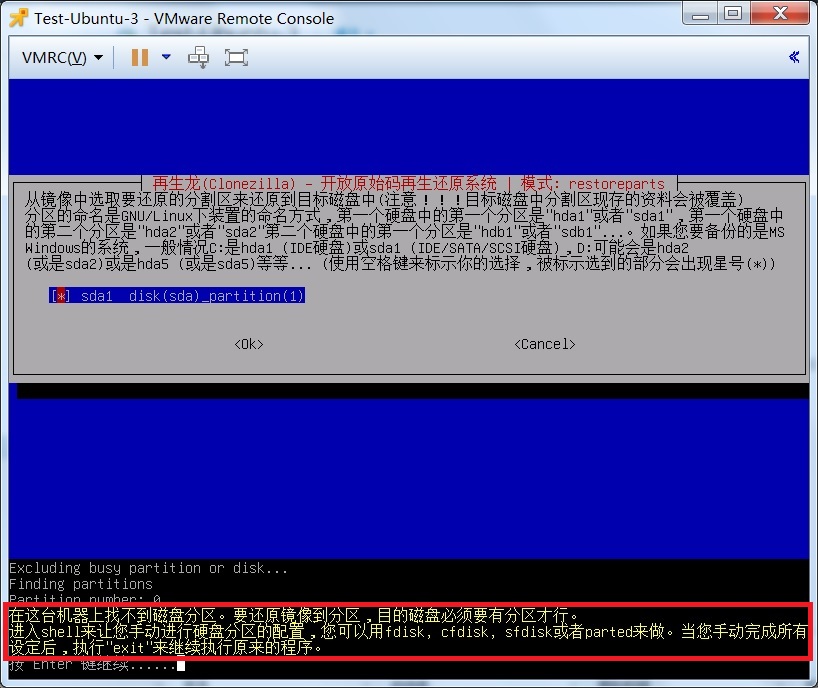 如果备份时是分区,那么还原时也只能还原到已划分好的分区上,再生龙Clonezilla是不会自动帮你分区的。