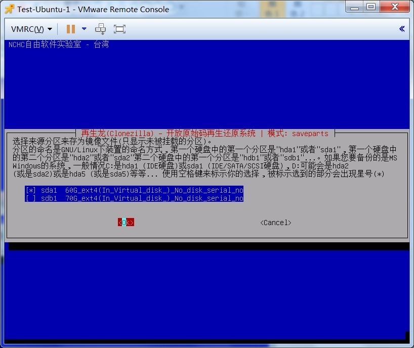 Esxi虚拟化环境,Ubuntu16.04系统(整个硬盘只有一个/分区),clonezilla-live-2.5.5-38-amd64.iso文件