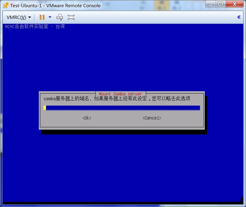 9.输入samba_server的域名。如果服务器是通过AD域管理的,这里需要输入。