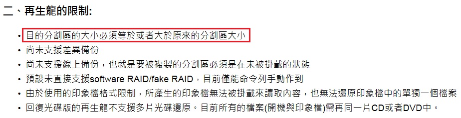 如果备份时是分区,那么还原时也只能还原到已划分好的分区上,再生龙Clonezilla是不会自动帮你分区的。